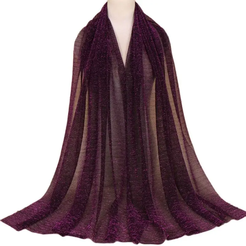 Lurex paillettes Hijabs pour femmes musulman brillant châle plaine froissé écharpes femme fête étoles plissé miroitant Hijab Turban Foulard |