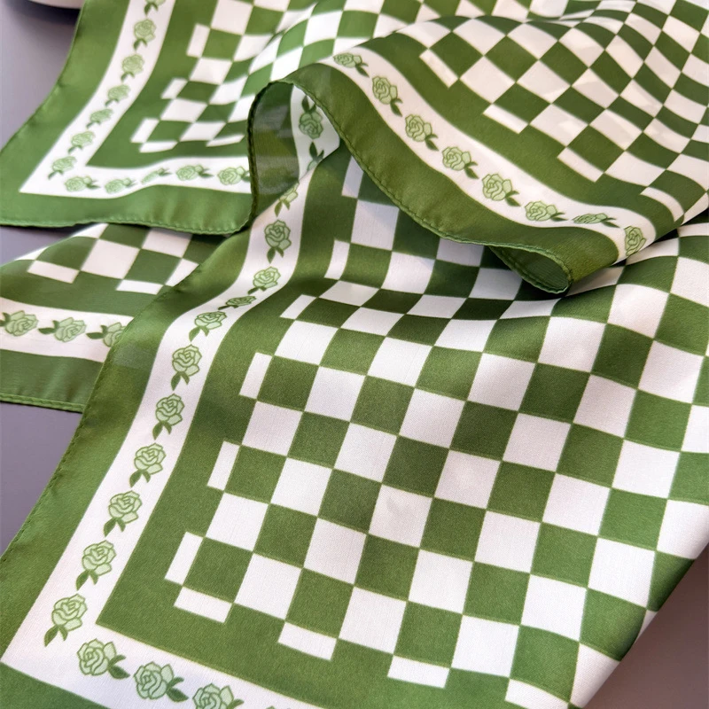 Luxe femmes soie Hijab écharpe Bandana enveloppement blanc vert grille concepteur carré foulards Foulard châle Foulard bandeau de cheveux Foulard
