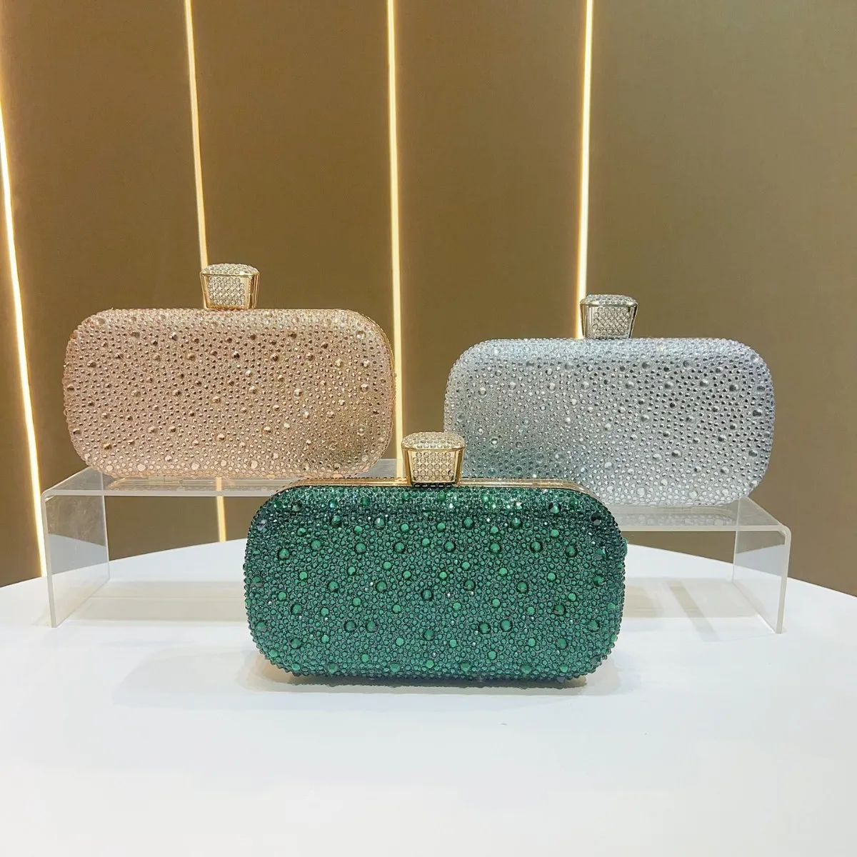 Luxueux brillant sac de soirée élégant dame pochette transfrontalière mode Polyester matériel dur boîte forme serrure boucle ouverture |