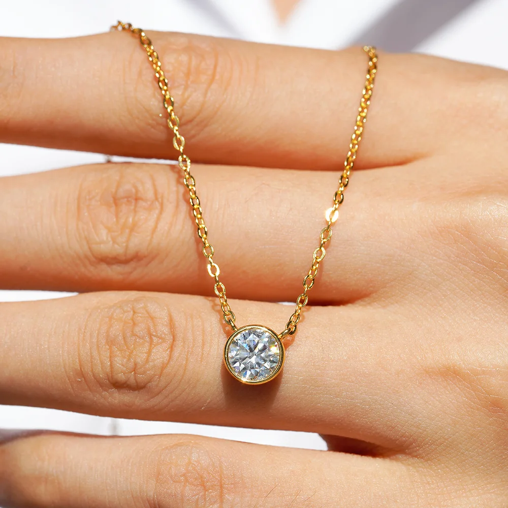 M-JAJA 1ct lunette Moissanite pendentif collier diamant collier pour femmes 18K plaqué or Rose S925 argent clavicule chaîne bijoux |