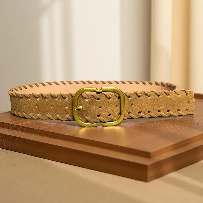 Maillard Styles rétro mode ceinture en daim avec boucle en métal ceinture de taille Ins ceinture de décoration polyvalente