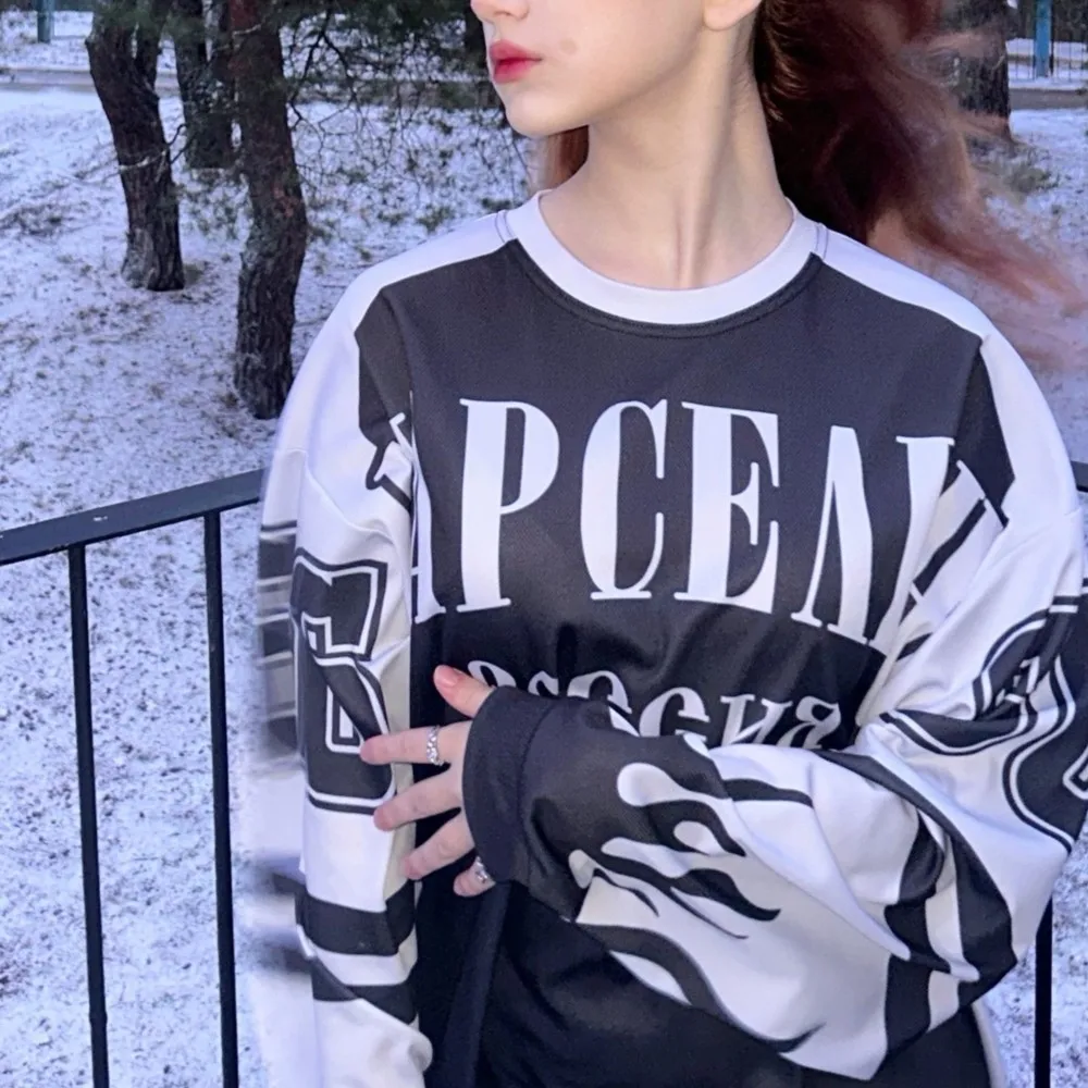 Maillot de baseball Harajuku pour hommes et femmes, t-shirt à manches longues, streetwear gothique Y2K, vêtements décontractés, BF