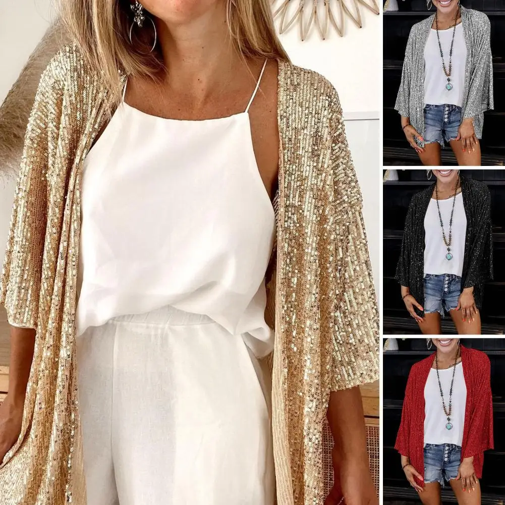 Manteau à paillettes pour femmes, veste dorée à manches longues et col montant, mode automne-hiver 2023, simple boutonnage, vêtements d'extérieur de fête pour dames |
