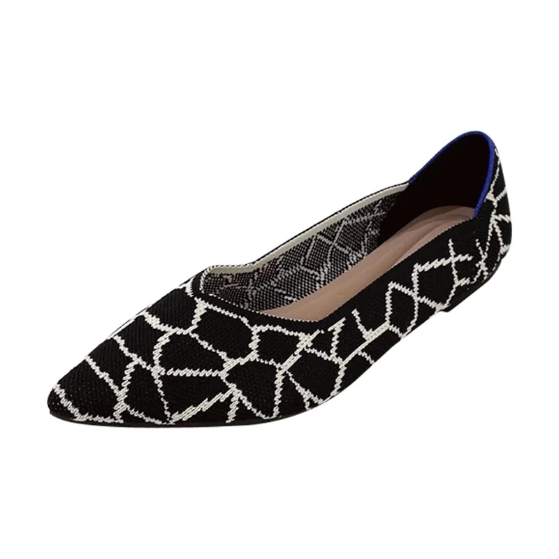 Marque Ballet chaussures plates femmes 2025 nouvelles chaussures tricotées pointu imprimé léopard mode volant tissé chaussures chaussures décontractées femmes |