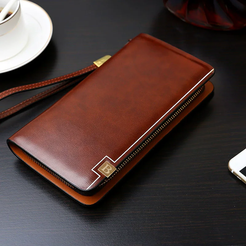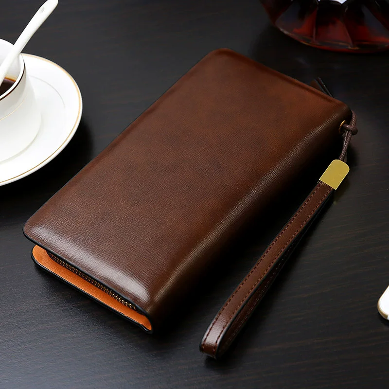 Marque de luxe hommes pochette en cuir longue sac à main Double fermeture éclair portefeuille d'affaires pour mari cadeau noir marron mâle décontracté sac pratique |
