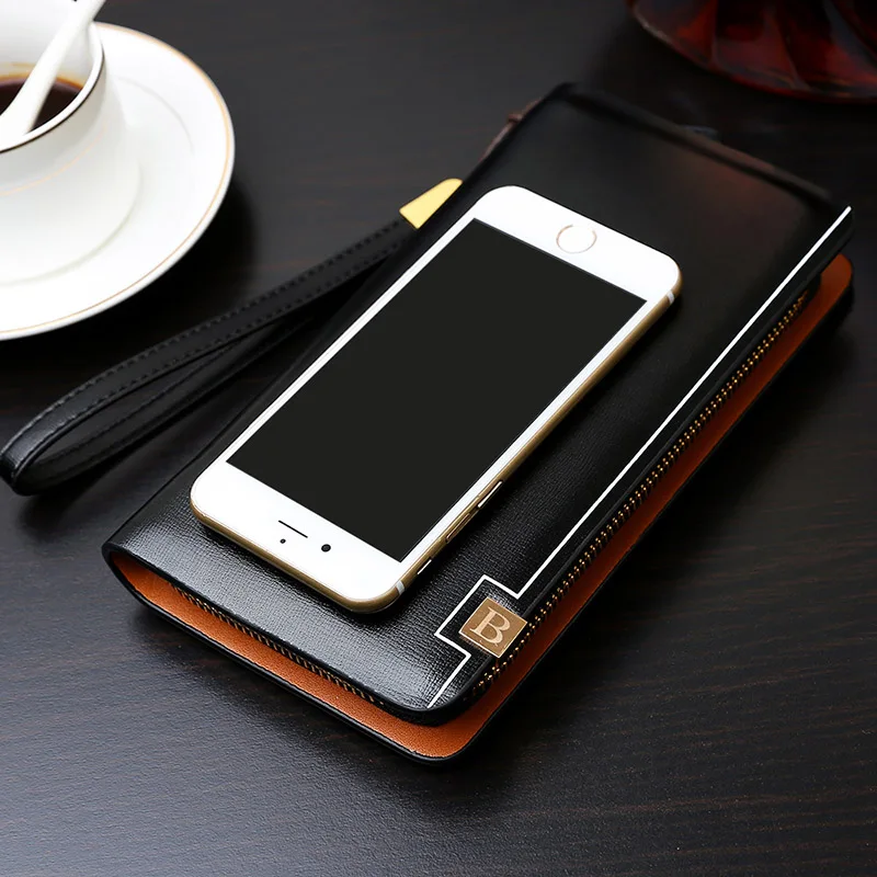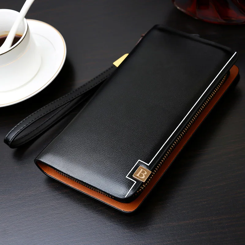 Marque de luxe hommes pochette en cuir longue sac à main Double fermeture éclair portefeuille d'affaires pour mari cadeau noir marron mâle décontracté sac pratique |