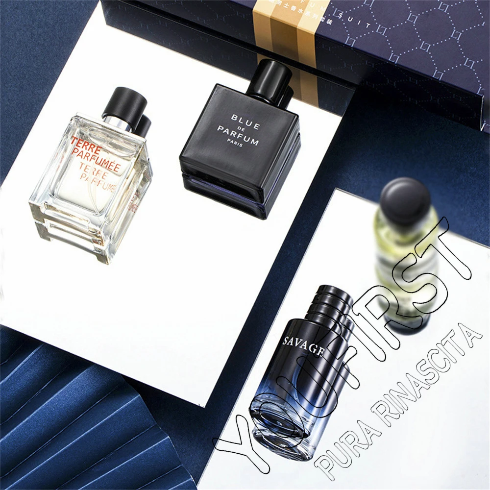 Marque de luxe Parfum hommes Cologne Parfums Homme coffret cadeau 4 pièces ensemble 100ml Parfums Masculinos naturel Floral fruité parfum SprayLuxu |