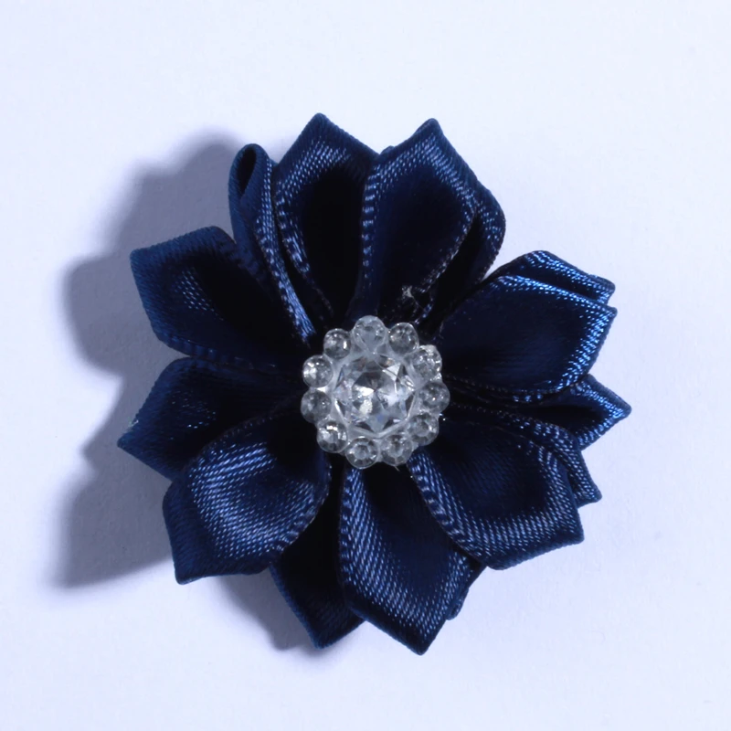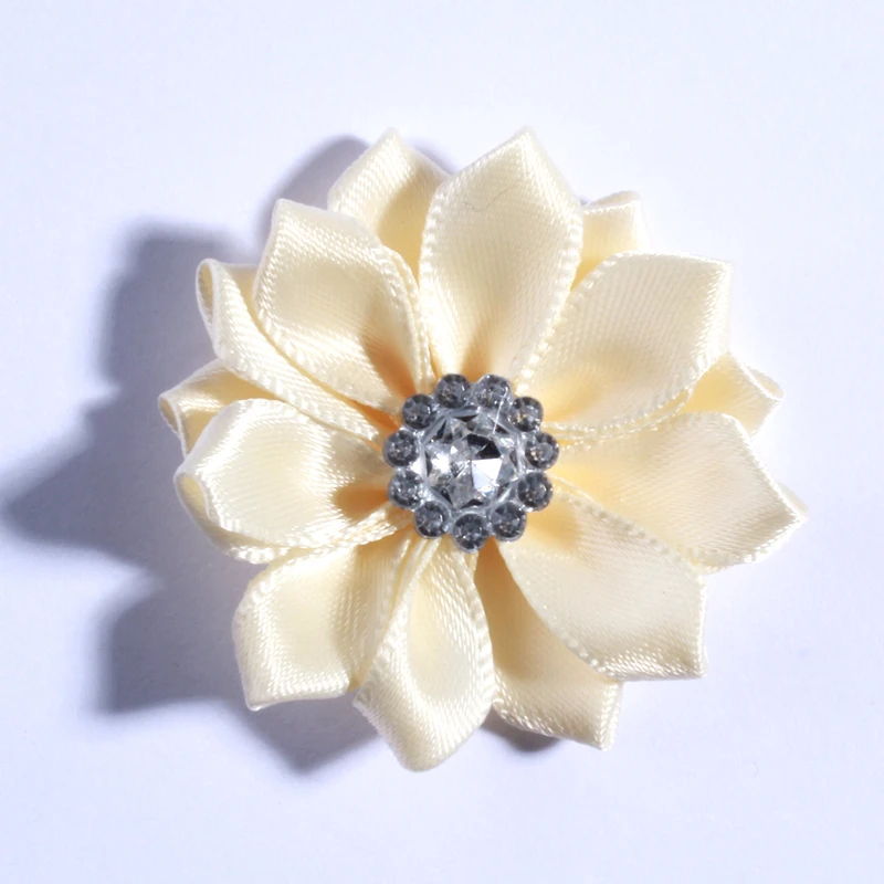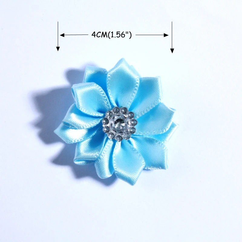 Mini fleur en Satin multicouche de 4CM, 120 pièces, avec bouton acrylique, ruban en soie, fleur pour couleur au choix