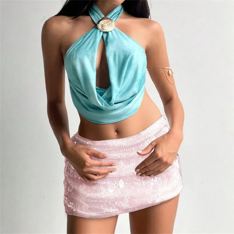 Mini jupe à paillettes pour femmes, mode d’été polyvalente, scintillante, couleur unie, taille basse, jupes courtes, robe Coquette Y2K, Streetwear