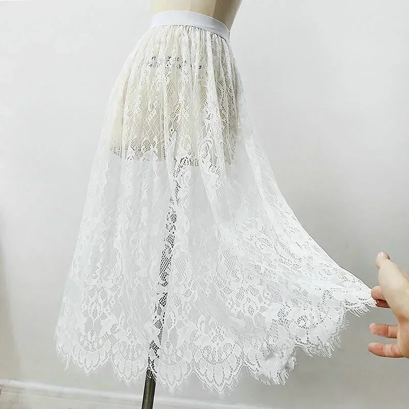 Mini jupe trapèze en dentelle florale pour femme, superposition, ourlet festonné, rallonge de chemise, surcouche réglable, balayage inférieur, demi-glissement |
