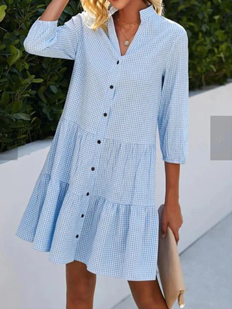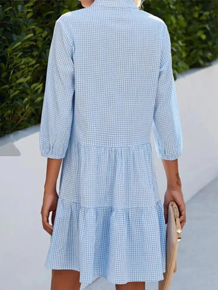 Mini robe à carreaux légère pour femmes, robes de style chemise, manches longues, col en V, printemps, automne |