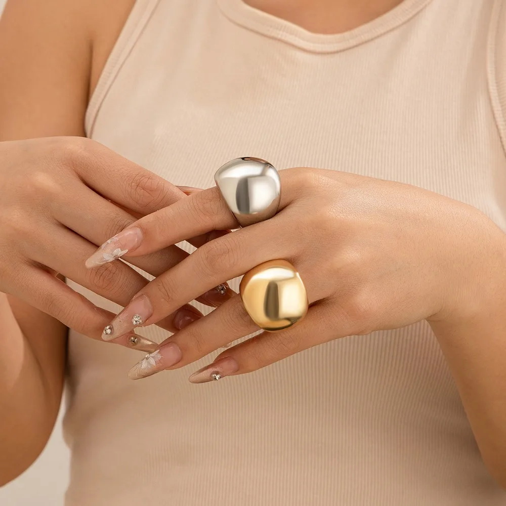 Minimalisme coréen géométrie irrégulière Surface brillante anneaux en métal goutte d'eau anneaux d'ouverture pour les femmes doigt concepteur charme bijoux |