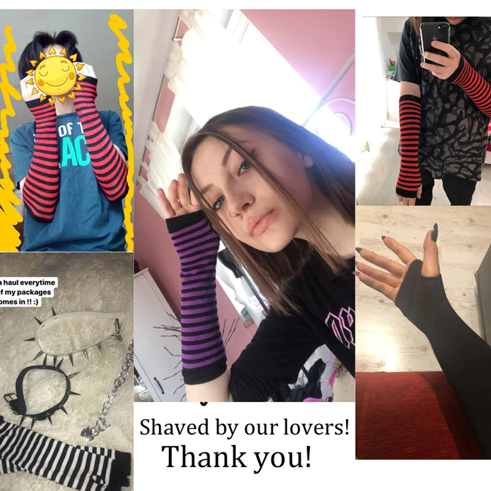 Mitaines chaudes en coton pour femmes, manches de rosée, tricotées, mitaines rayées, gants sans doigts, chauffe-bras