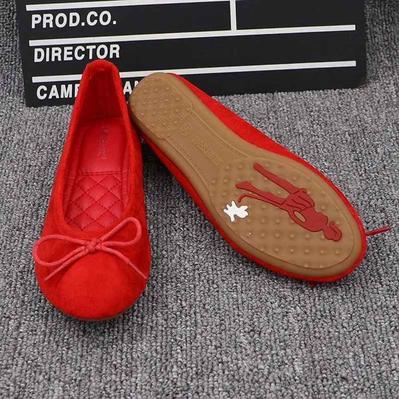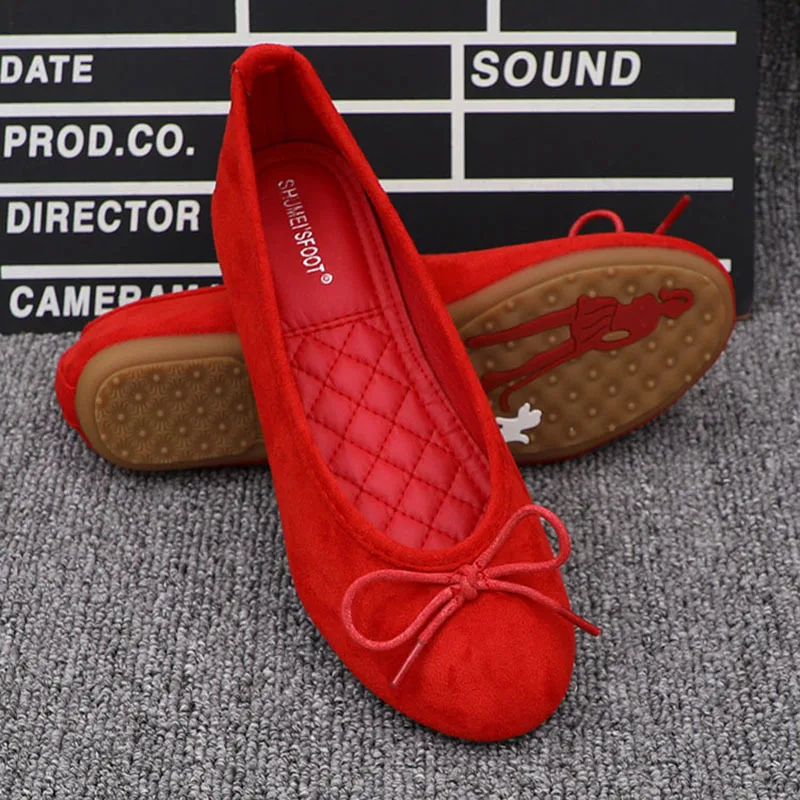 Mocassins en faux daim pour femmes, chaussures plates à enfiler, mocassins ronds, ballerines peu profondes, nœud papillon, grande taille 35-41