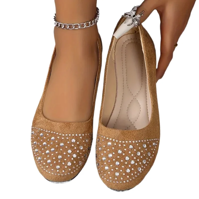 Mocassins peu profonds en cristal brillant pour femmes, ballerines légères et antidérapantes, chaussures de marche de luxe à semelle souple pour femmes |