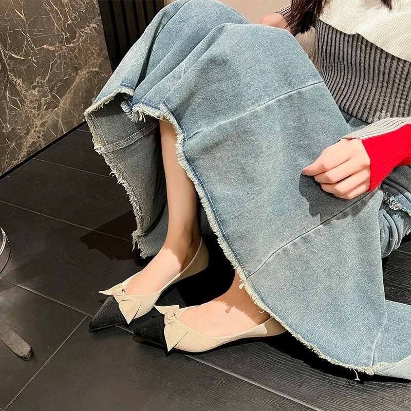 Mocassins plats chaussures pour femmes 2025 bout pointu plat bureau avec nœud dames chaussures d’été vacances E A Social confortable L