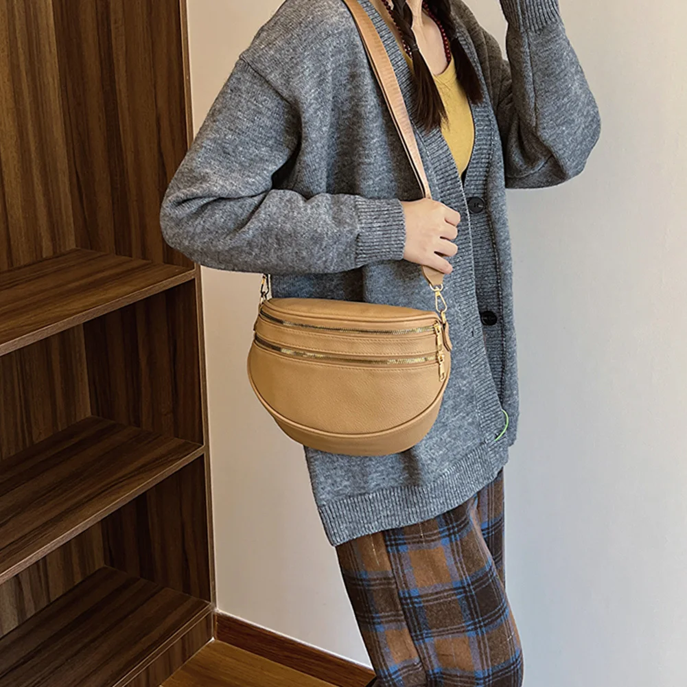 Mode Fanny Pack sac à bandoulière pour femmes en cuir PU sac à bandoulière fille large sangle sacs banane femme décontracté couleur unie sac à bandoulière