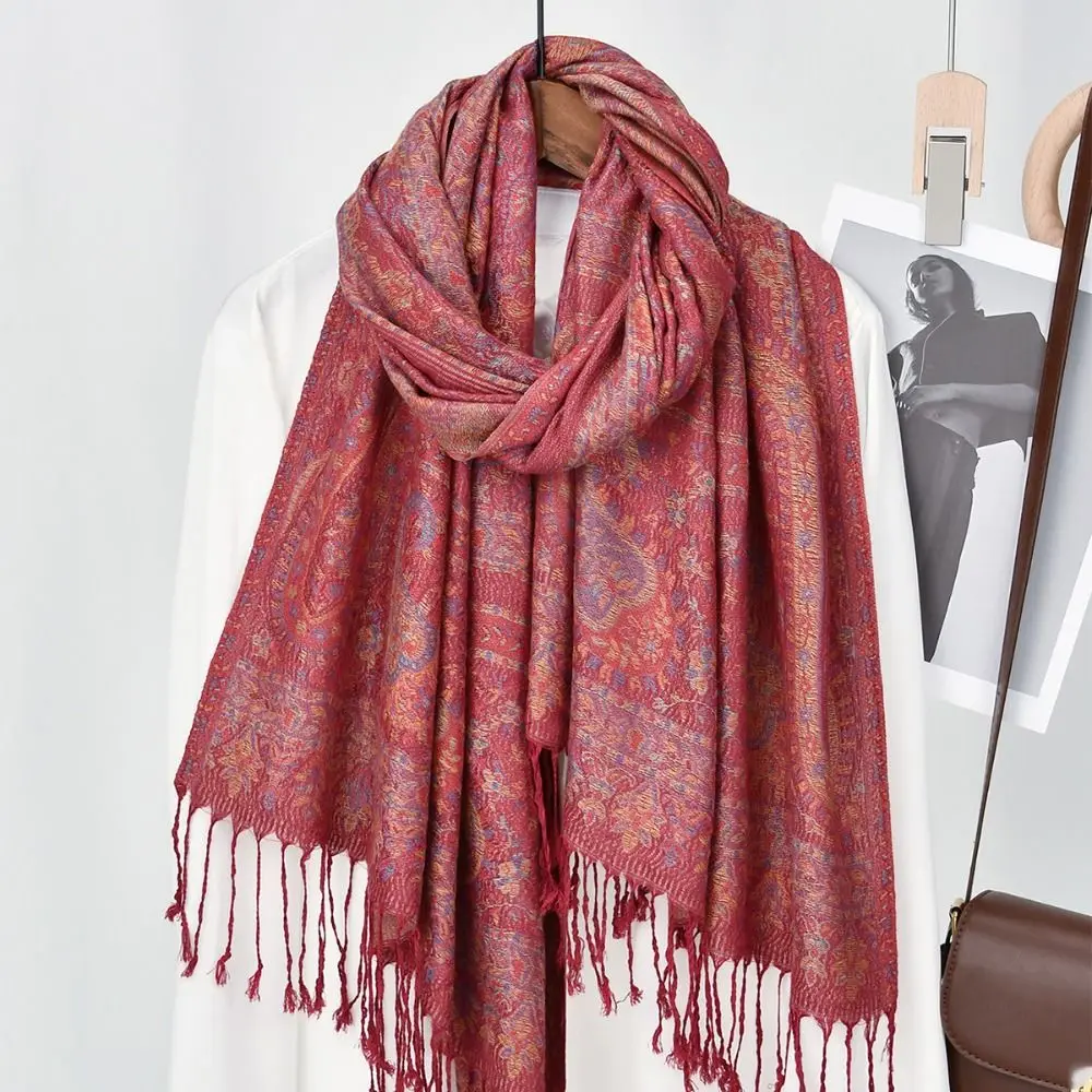 Mode imprimé Style ethnique écharpe Jacquard longue Hijab écharpe gland mince cajou foulard femmes |