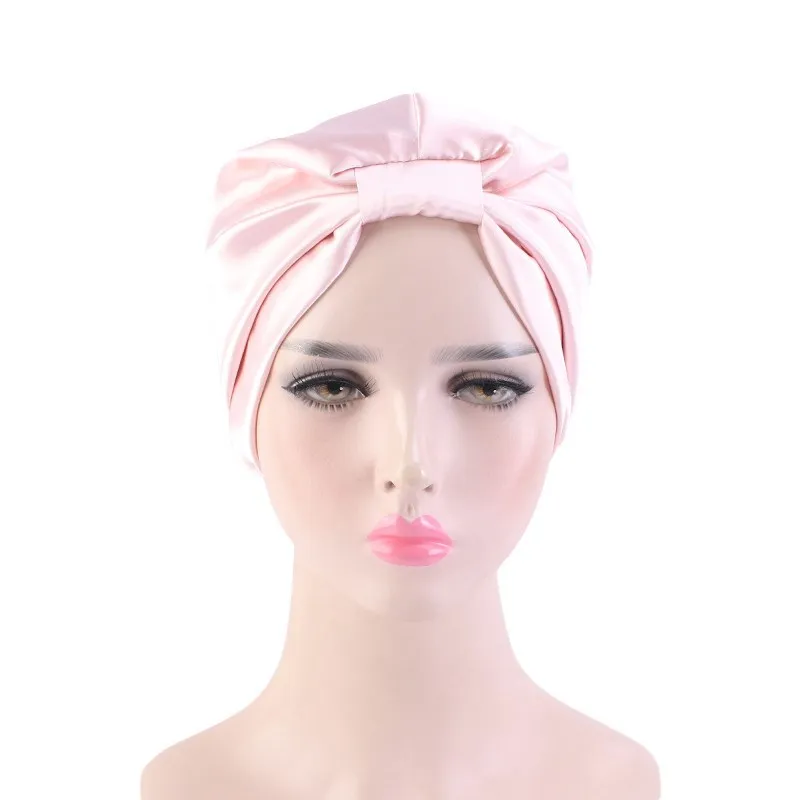 Mode musulman soie Turban pour cheveux femmes enveloppement tête casquettes dame chapeau de couchage femme Hairloss chimio inde chapeau Satin Turbante Mujer |