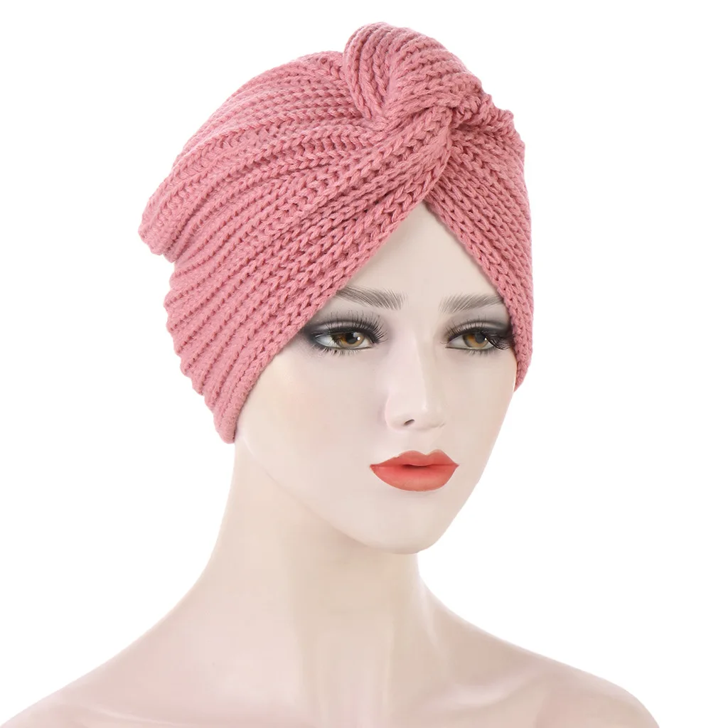 Mode musulmane Imitation cachemire Turban casquettes pour femmes Style bohème Hijab casquettes indien chapeau couleur unie dames bonnet tricoté |