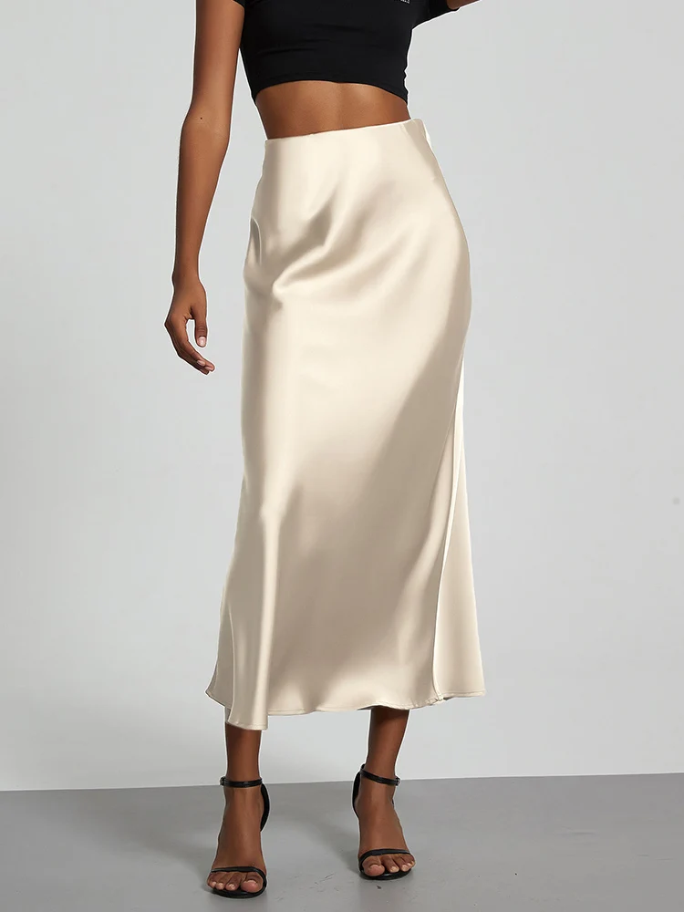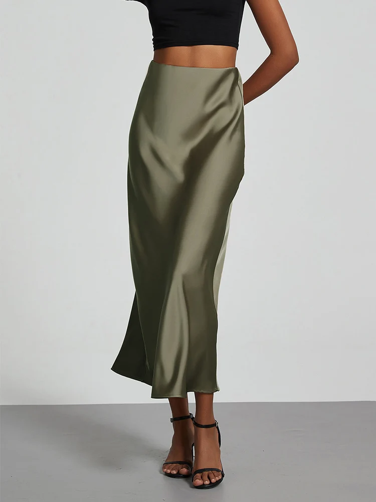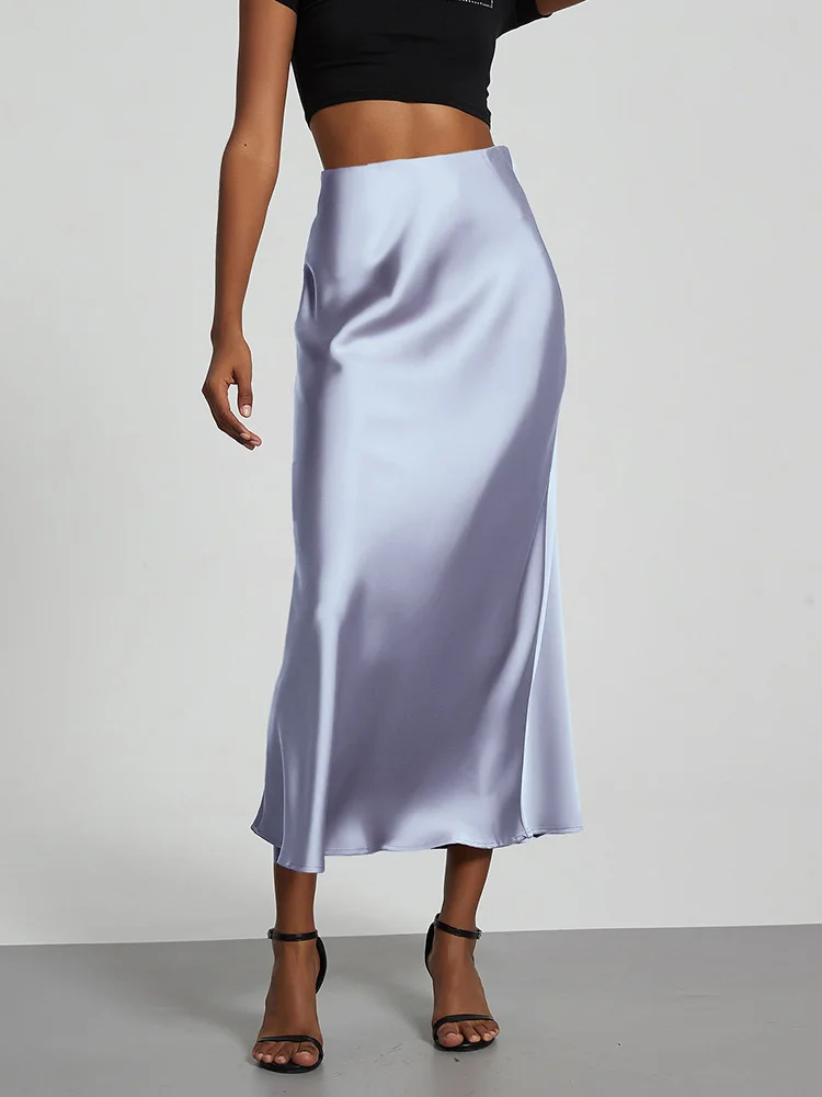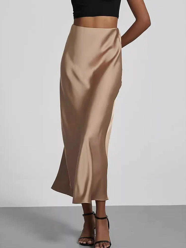 Mode Satin fête jupe longue taille haute couleur unie décontracté basique femmes jupes queue de poisson jupe Chic été femme vêtements 2025 |
