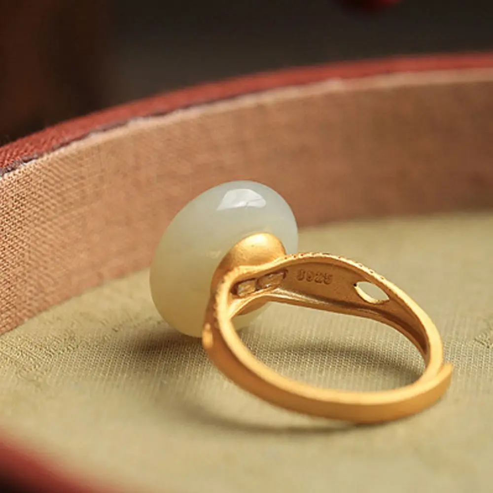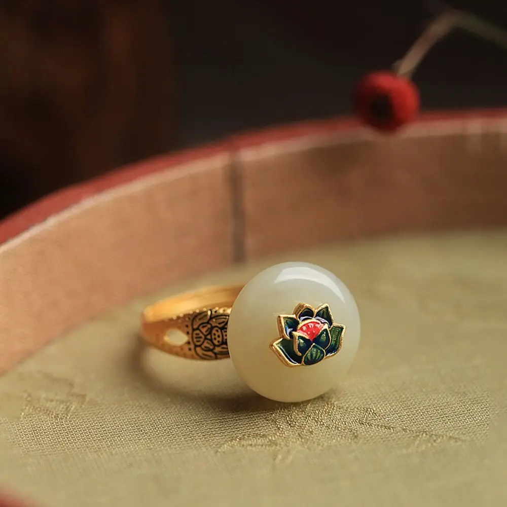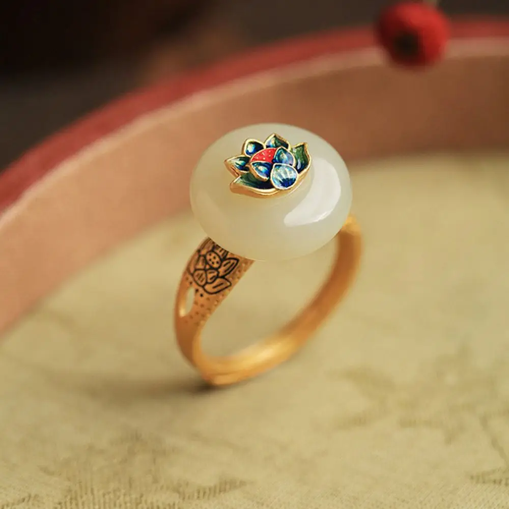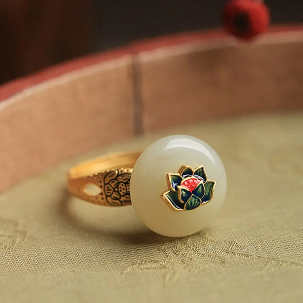 Mode tempérament élégant à la mode bijoux de fête ouvert Jade Lotus ancien anneau Style chinois anneau |