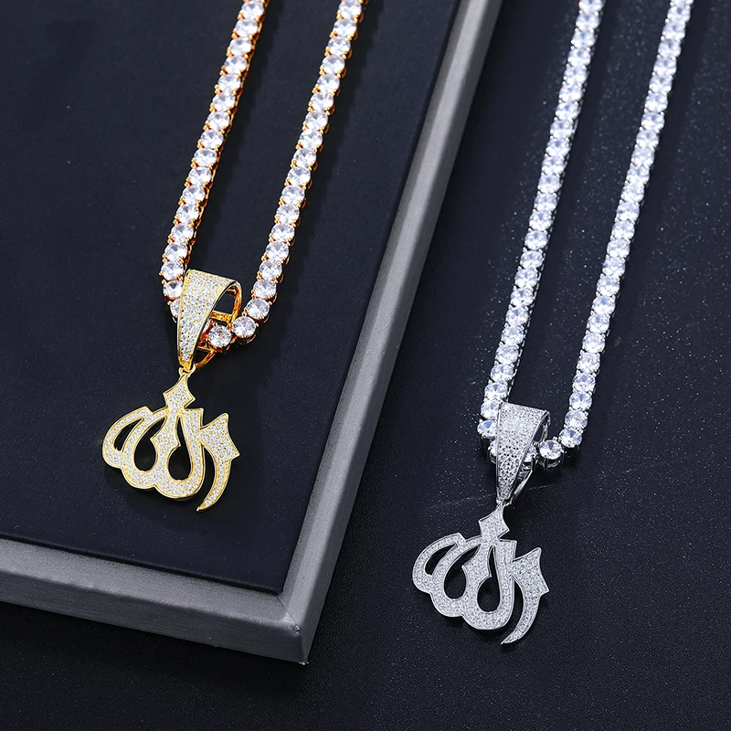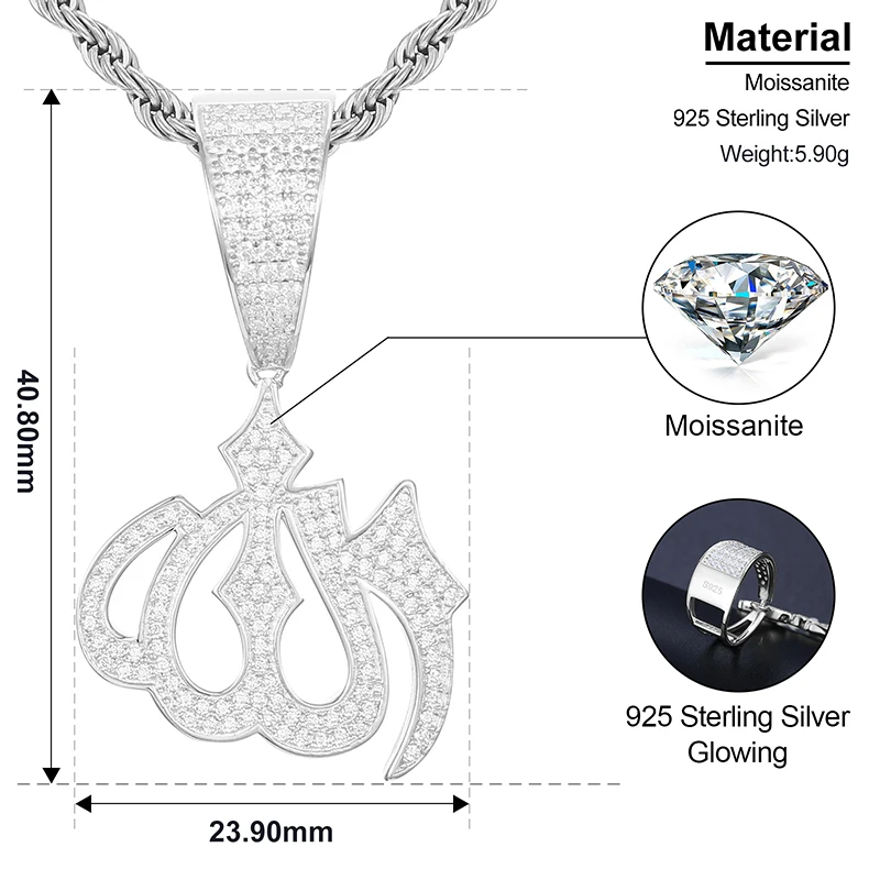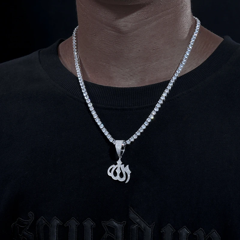 Moissanite – collier avec pendentif en forme de Rune musulmane, en argent Sterling 925, bijoux pour hommes, avec diamants scintillants, Allah |