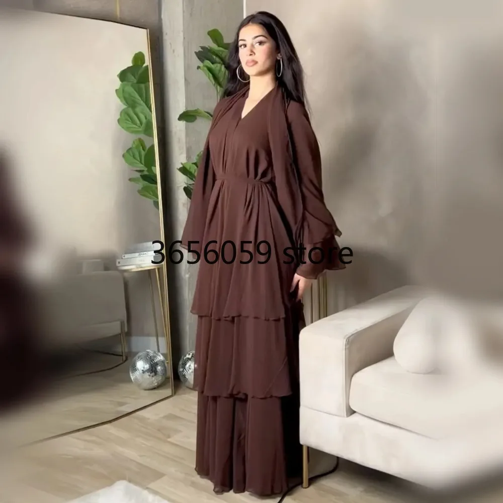 Mousseline de soie Abaya Kimono dubaï musulman Cardigan couches Abayas femmes Robe décontractée femme Islam vêtements avec ceinture Abaya tenues arabes |