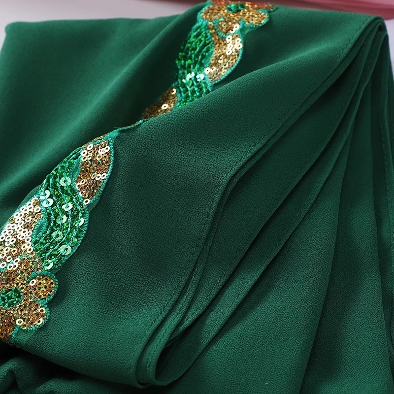 Mousseline de soie Hijab Turban pour femmes musulmanes Mode Foulard Ramadan Châles Paillettes Écharpe Headwraps Voile Islamique Bandeau 70x175cm |