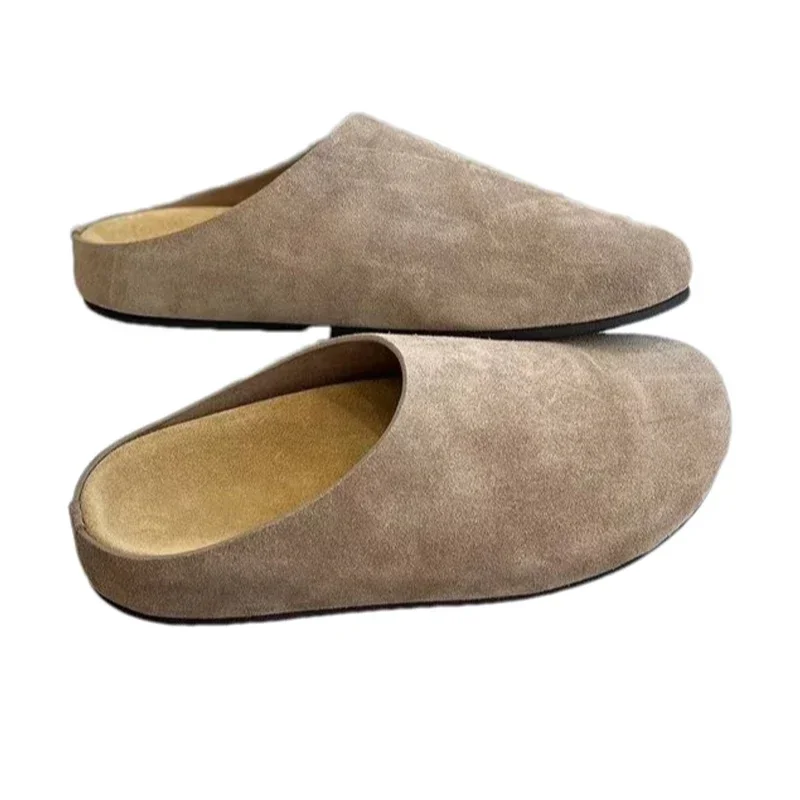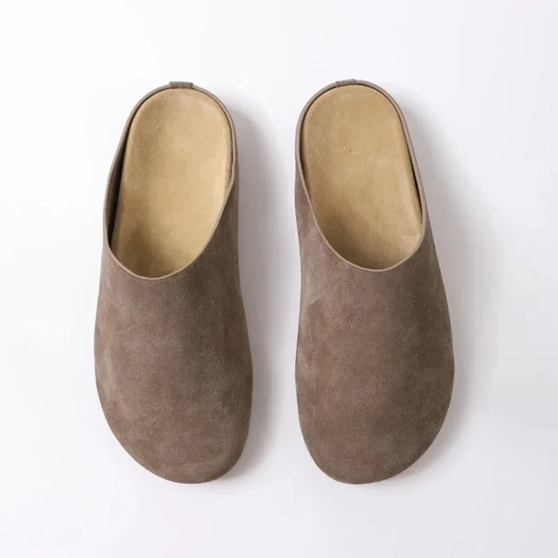 Mules plates en daim pour femmes, pantoufles bao tou, sandales à la mode, nouvelle robe de plage en plein air, diapositives décontractées et confortables, 2025