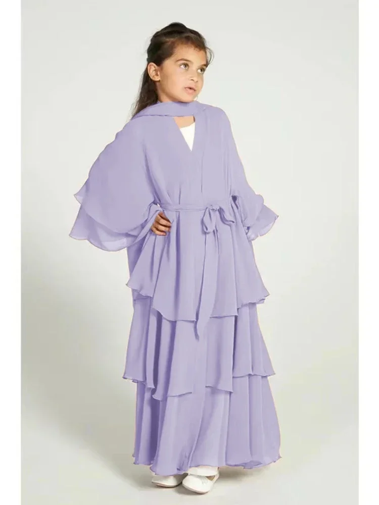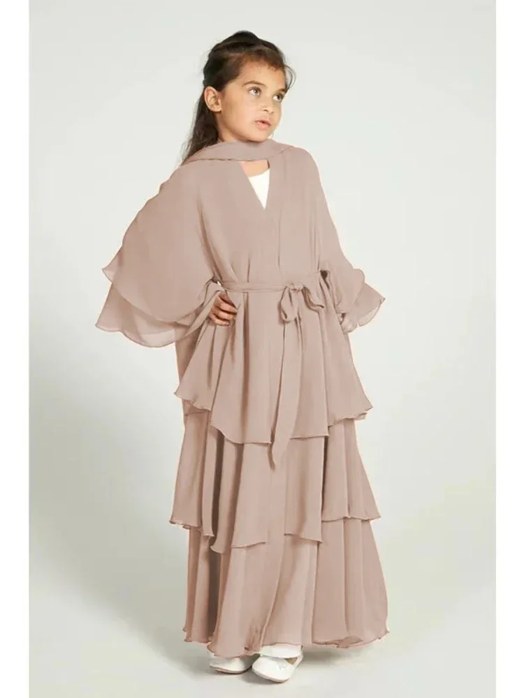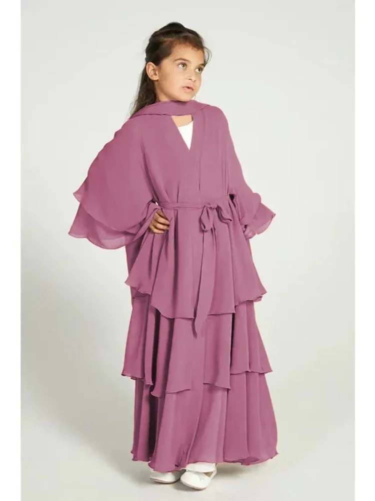 Musulman douce fille Abaya en mousseline de soie 3 couches Robe de gâteau Eid diamant enfants Abayas dubaï arabe Islam Abayas enfants Robe Cardigan |