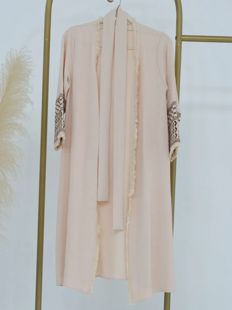 "Ce caftan est magnifique ! La qualité des matériaux est vraiment superbe, le tissu est doux et fluide. Les détails de broderie et les franges lui donnent un look élégant et luxueux. J'ai particulièrement apprécié la coupe qui me met en valeur et le fait qu'il soit très confortable à porter. Le seul bémol est que le choix de couleurs pourrait être un peu plus varié, mais dans l'ensemble c'est un vêtement superbe que je recommande sans hésiter !"
