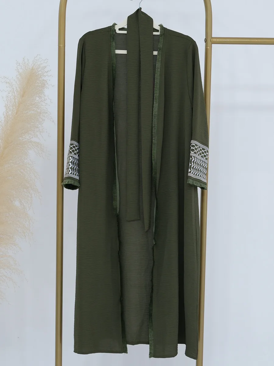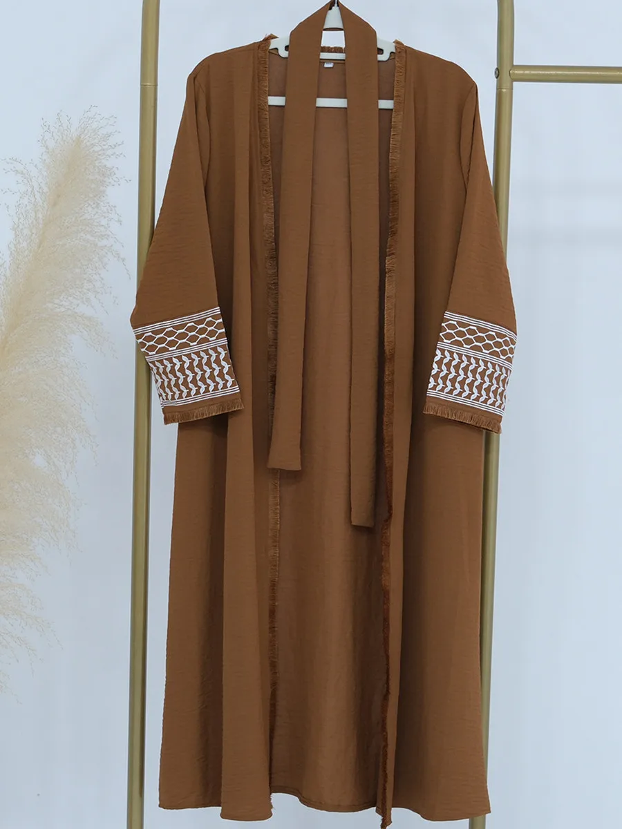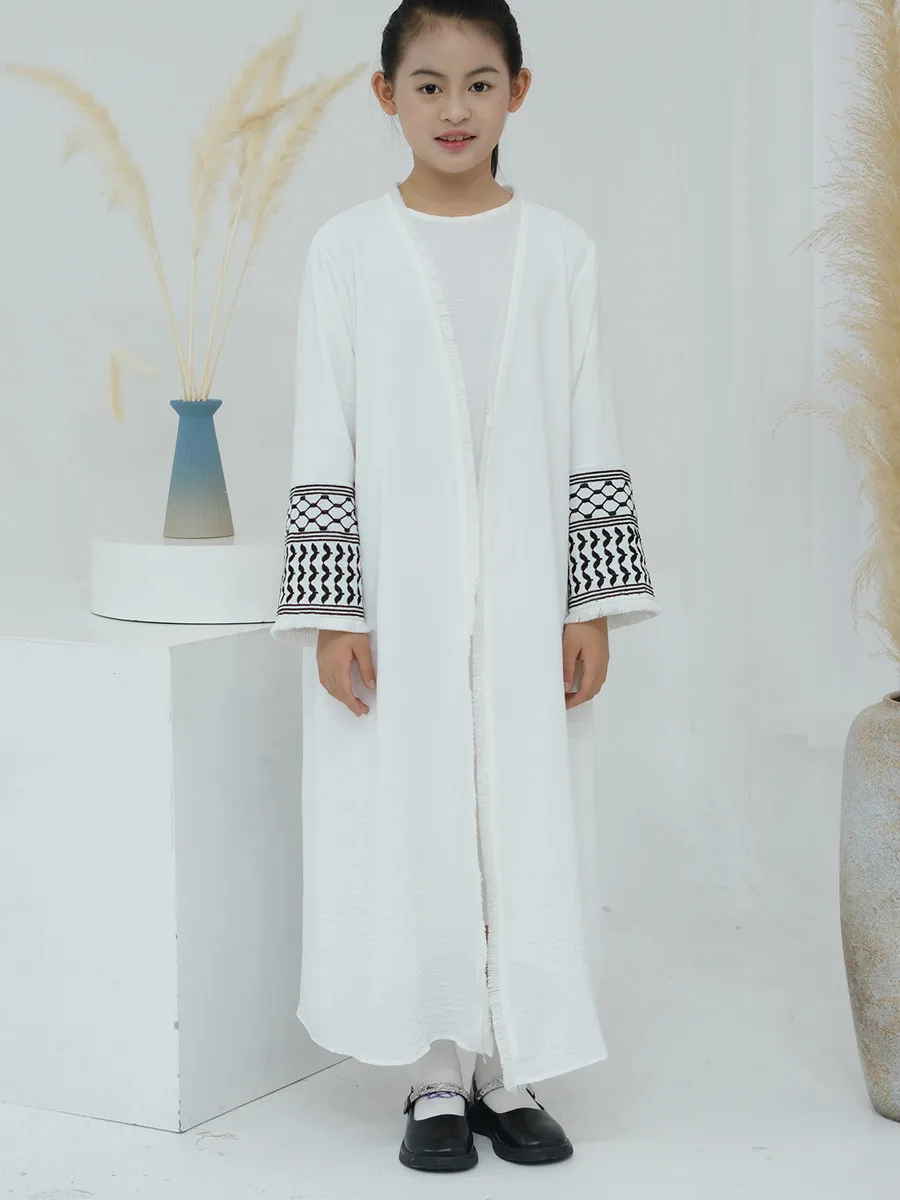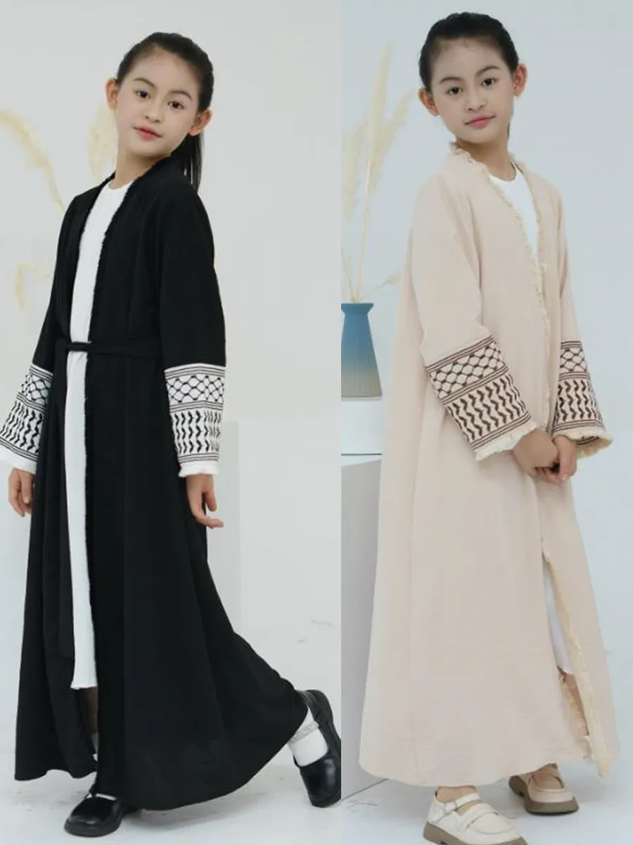 Musulman enfants filles luxe dubaï Abaya Kimono Cardigan broderie glands Robe longue Ramadan Robe caftan Femme Islam vêtements