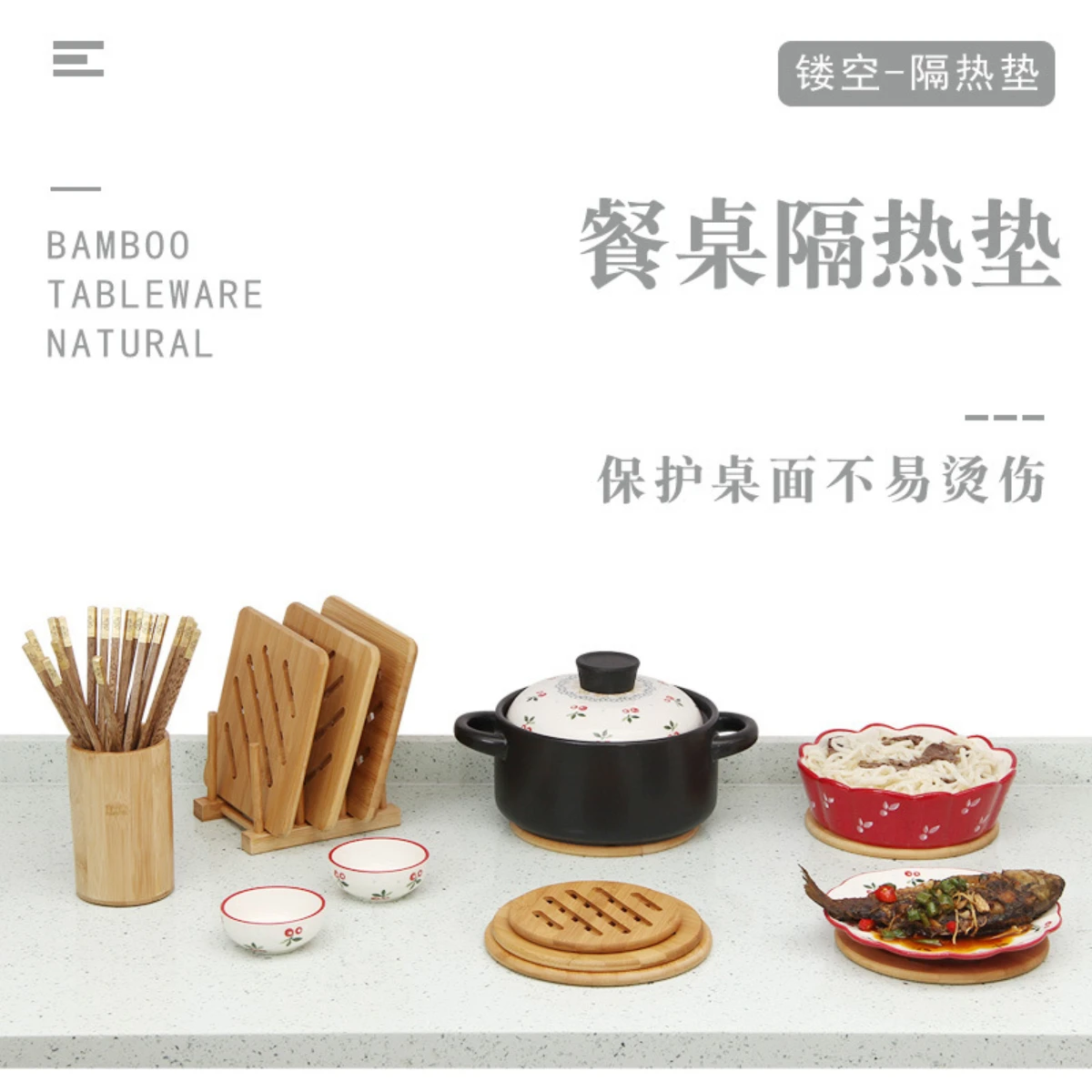 Napperon Portable, dessous de verre circulaire épais, tapis isolant en bambou évidé, tapis de table à manger