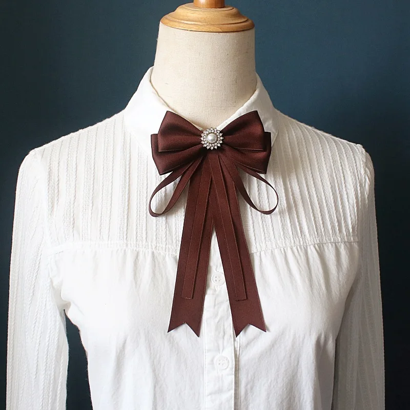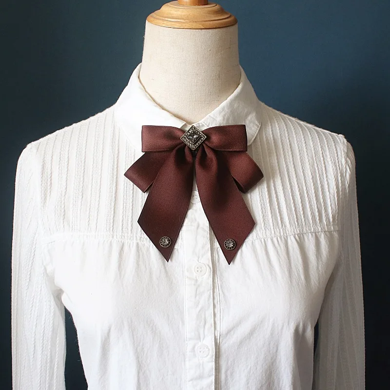Nœud papillon de couleur unie pour femmes, Simple, à la mode, Style collège frais, broche à fleurs, accessoires de costume de chemise haut de gamme |
