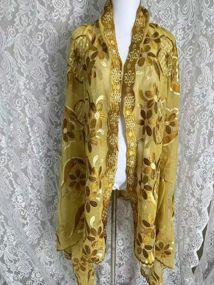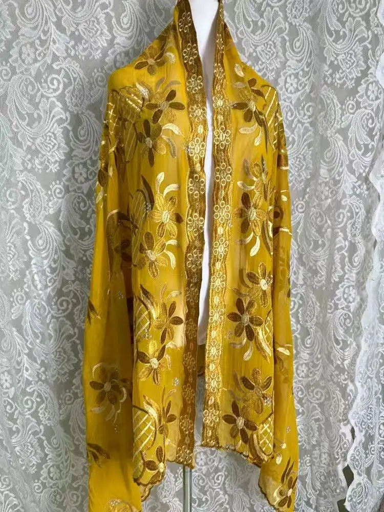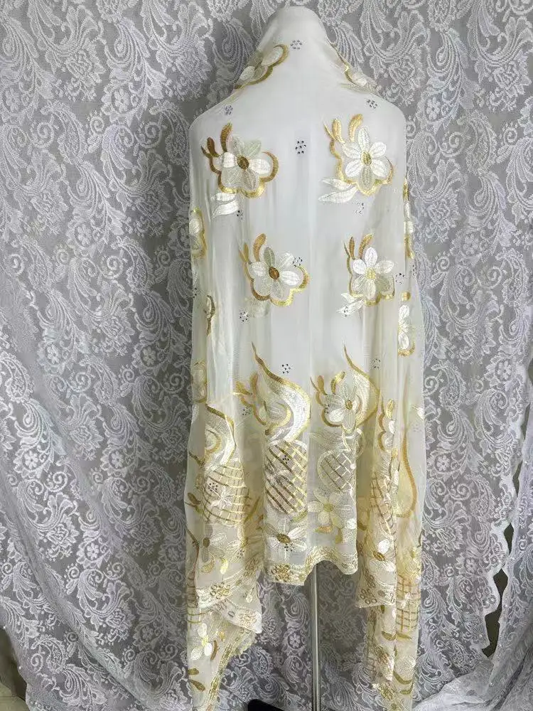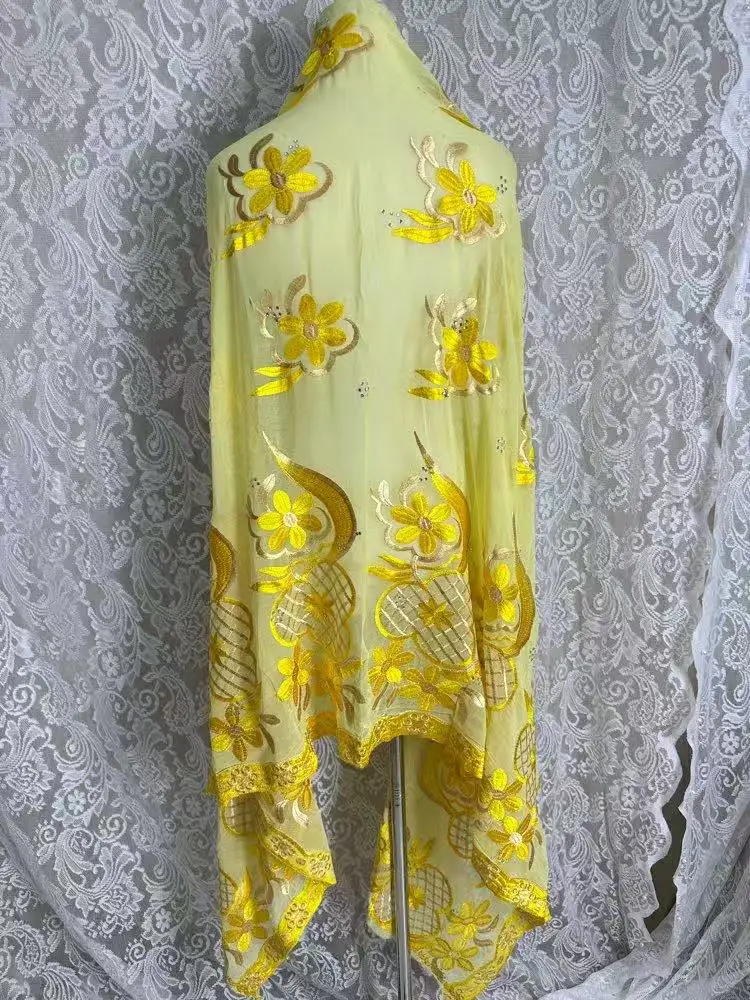 Nouveau 2025 dubaï Style afrique en mousseline de soie Hijab brodé châle Pashmina Turban foulard pour les femmes musulmanes accessoire de mode islamique |