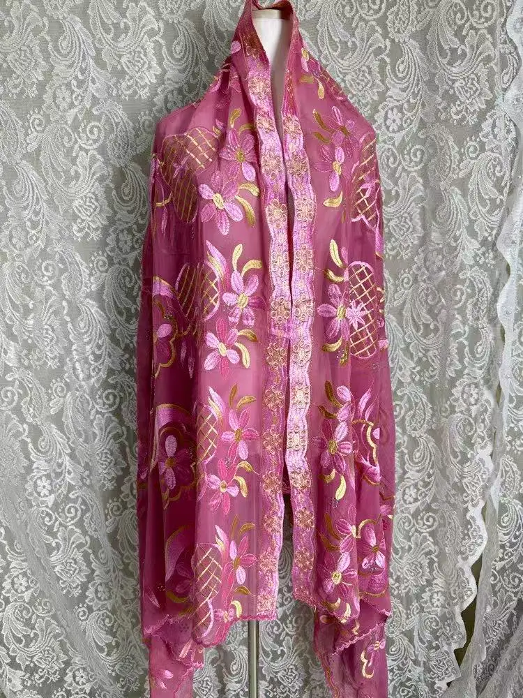 "J'ai été ravie de recevoir ce magnifique hijab en mousseline de soie. La broderie est superbe et les couleurs sont tout à fait sublimes. Bien que le tissu soit très fin, il a une belle tenue et ne se froisse pas facilement. Le seul bémol serait que le châle est un peu plus petit que je ne l'aurais souhaité, mais cela ne m'empêche pas de le porter avec style et élégance. Dans l'ensemble, c'est un accessoire de très haute qualité que je recommande vivement."