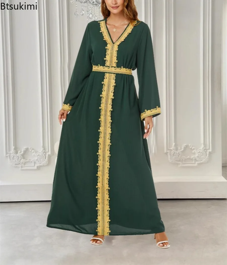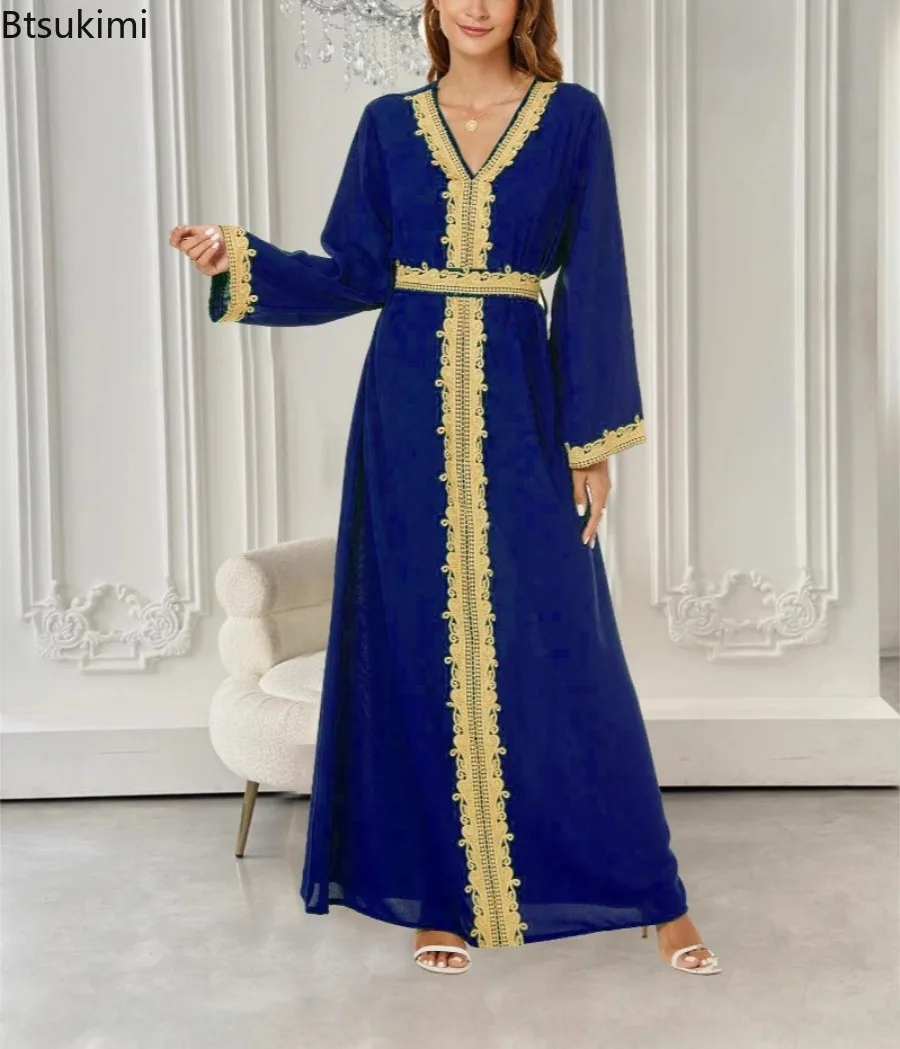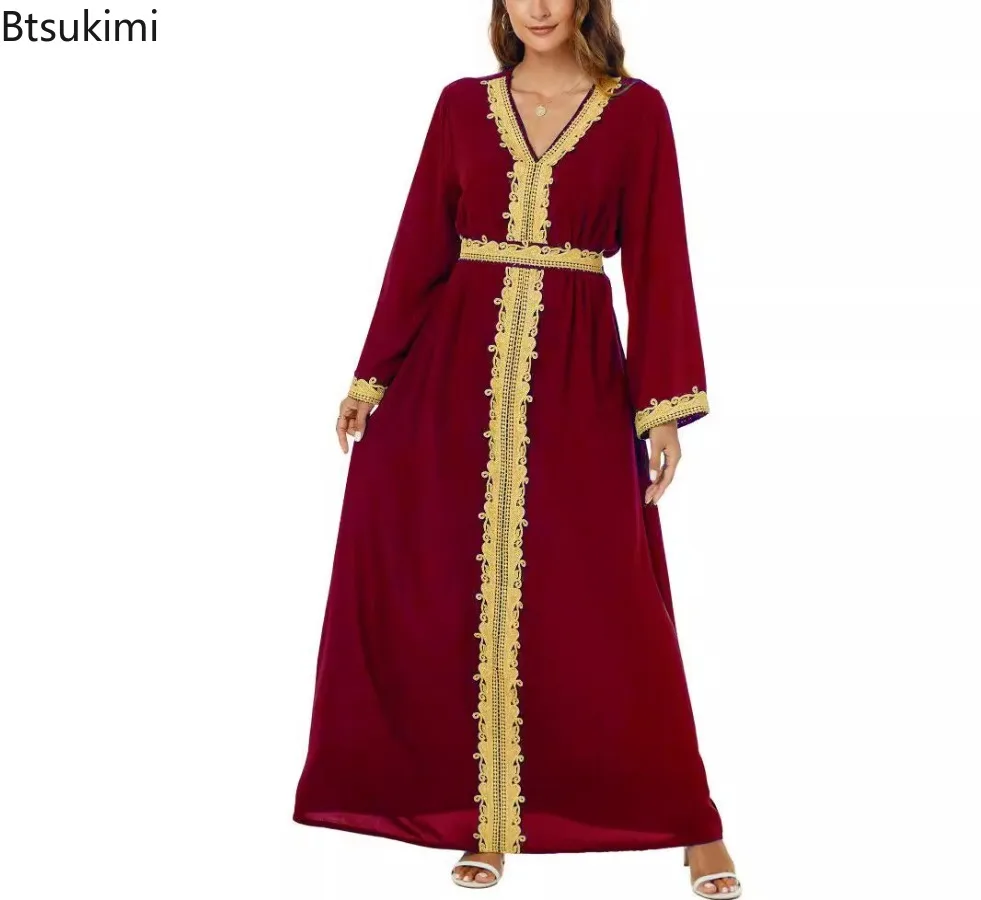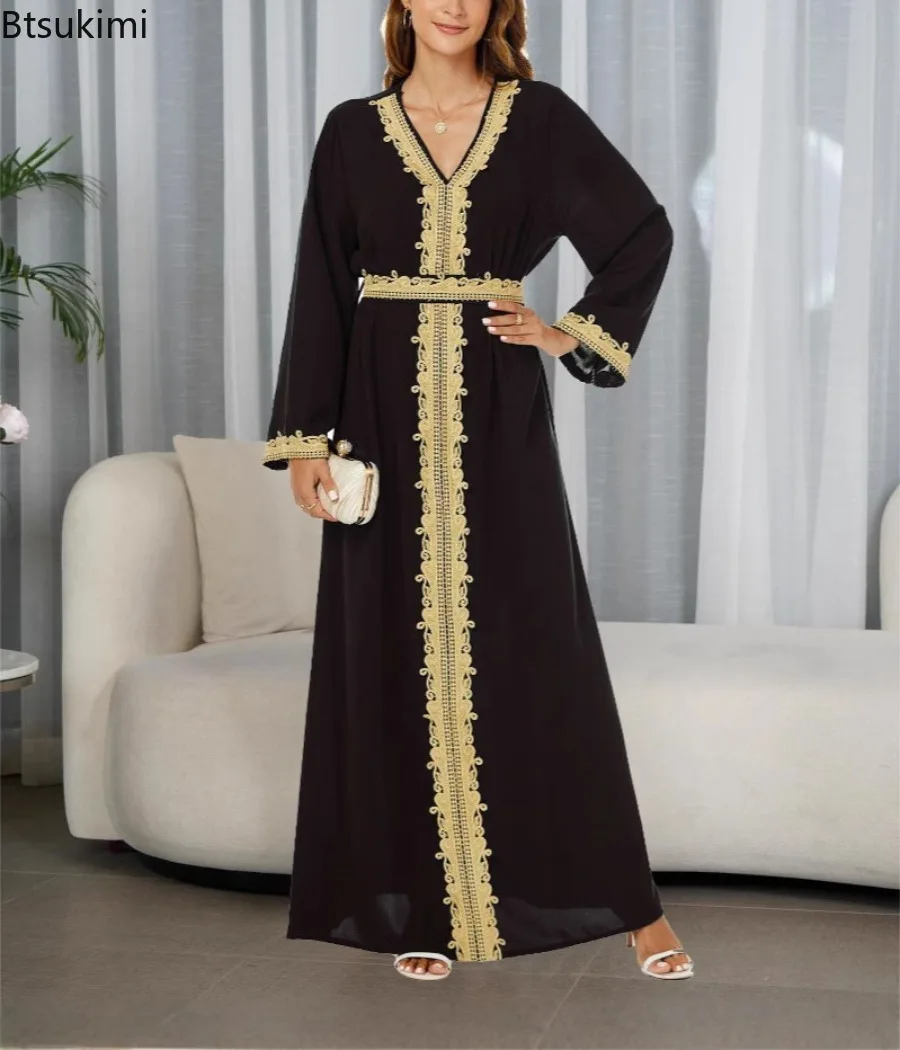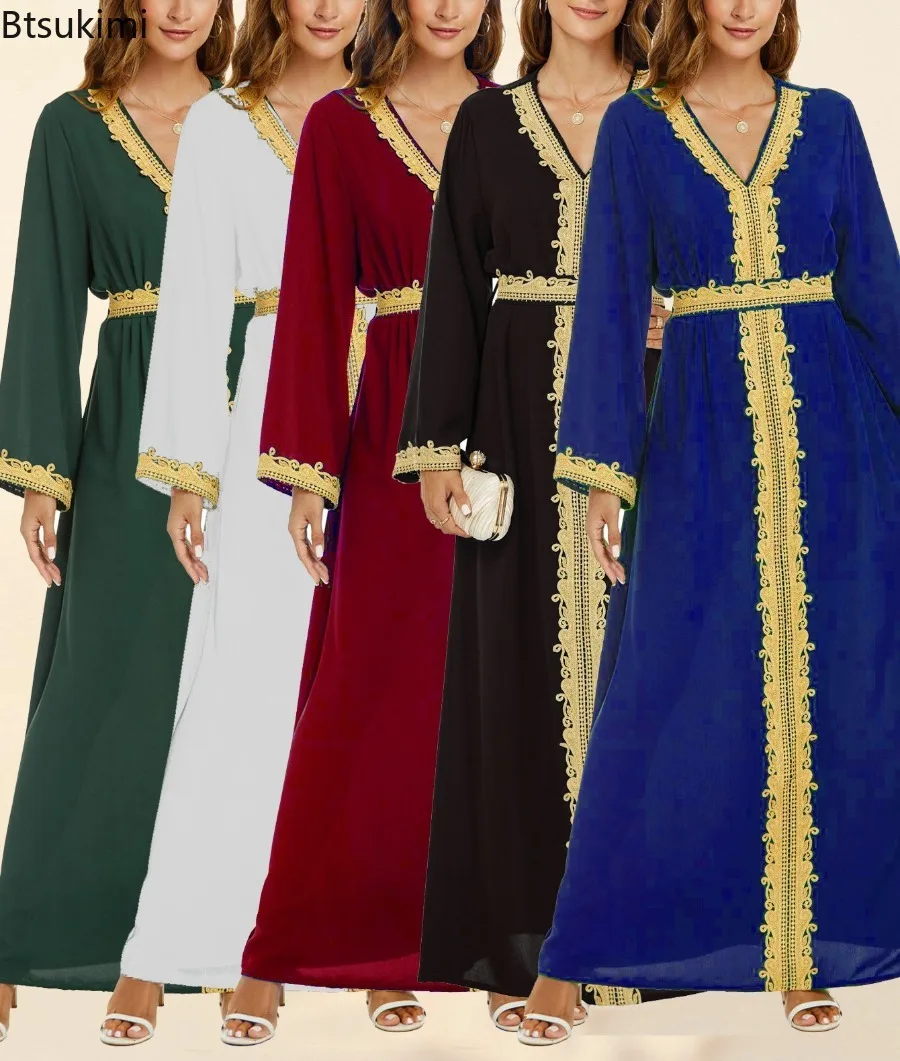Nouveau arabe marocain robe musulmane Abaya femmes broderie Maxi Abayas dubaï turquie Islam caftan Longue Musulmane robes Largos 2025 |