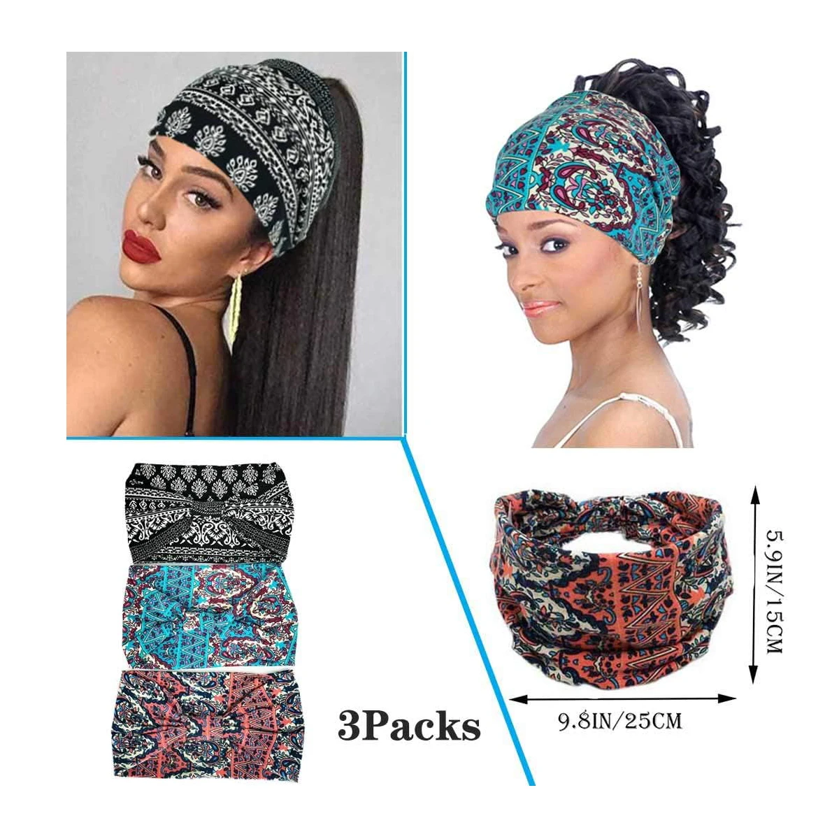 Nouveau bandeau large bohème pour femmes noué Yoga Hijab bandeau rayé élastique Hijab bandeau accessoires de cheveux