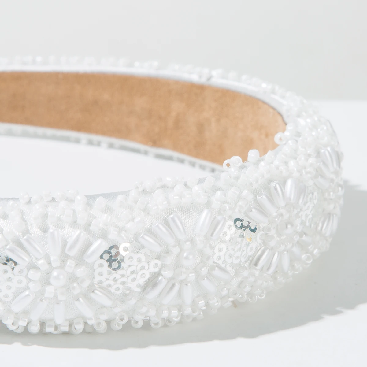 Nouveau bandeau minimaliste et polyvalent avec perles de riz et paillettes cousues à la main, exuding un haut crânien élevé et un style extérieur |