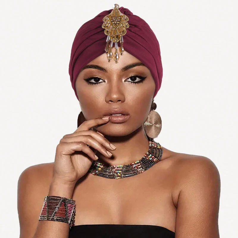 Nouveau bijoux élégants Turban casquettes musulman Hijab casquettes en relief élastique tête enveloppement pour femmes fille Bonnet dames Bandana chimio casquette