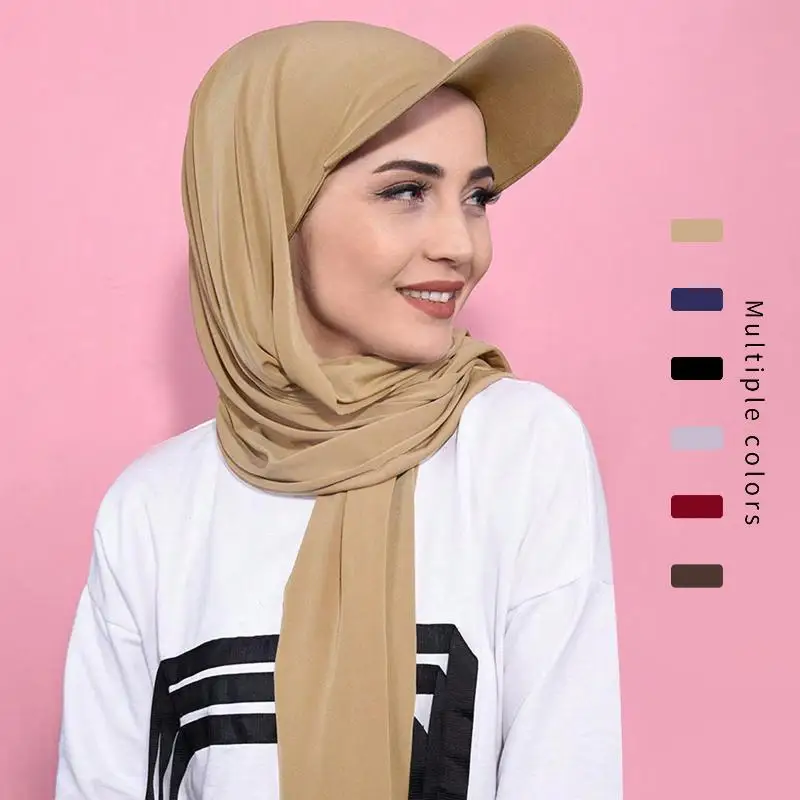 Nouveau Casquette de Baseball Hijab solide en mousseline de soie châle casquette femmes musulmanes écharpe instantanée