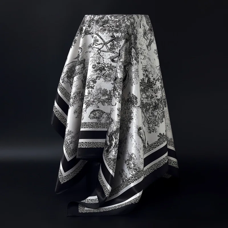 "Ce foulard en soie est vraiment magnifique ! La qualité est exceptionnelle, le toucher est extrêmement doux et les motifs sont superbes. J'ai été agréablement surprise par la légèreté du tissu qui le rend très facile à porter. Le seul bémol serait que le foulard se froisse un peu facilement, mais cela ne gâche en rien mon plaisir à le porter. Dans l'ensemble, c'est un achat dont je suis totalement satisfaite et que je recommande vivement !"