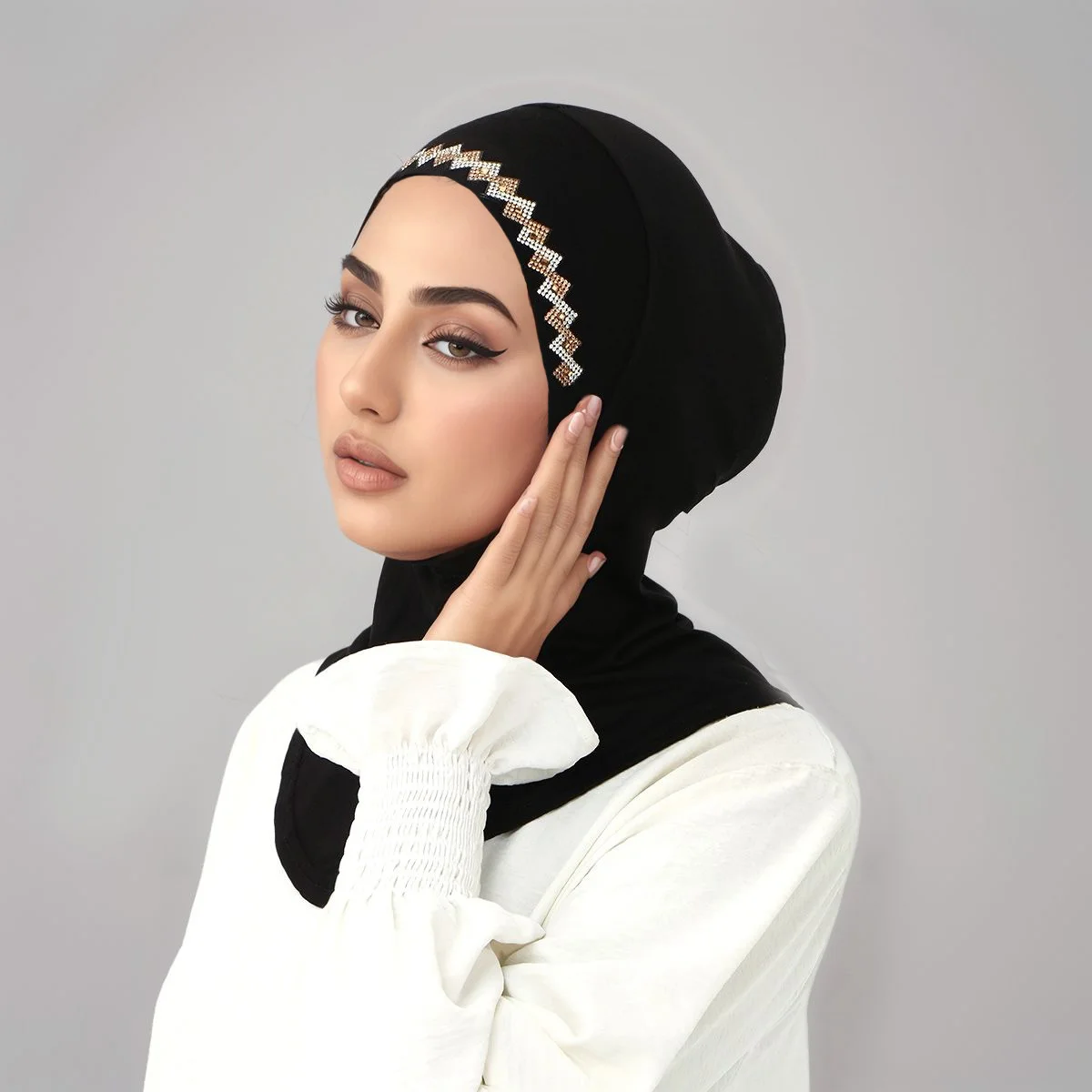 Nouveau Hijab instantané avec strass brillants pour femmes musulmanes, couverture complète, Bonnet en Jersey de coton solide, prêt à porter, casquette intérieure
