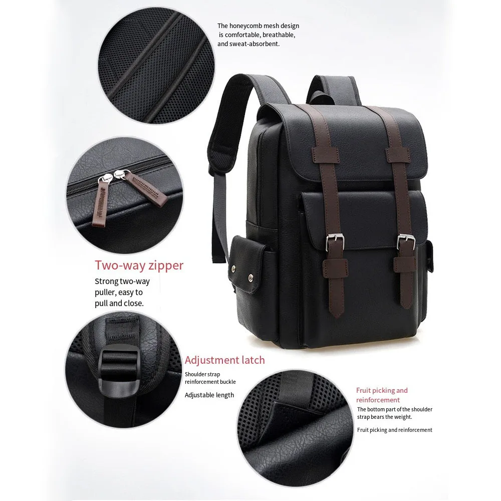 Nouveau sac à dos à boucle de ceinture, sac décontracté rétro britannique, sac à dos en cuir Pu souple, sac de voyage de grande capacité, sac d'école unisexe pour étudiant |