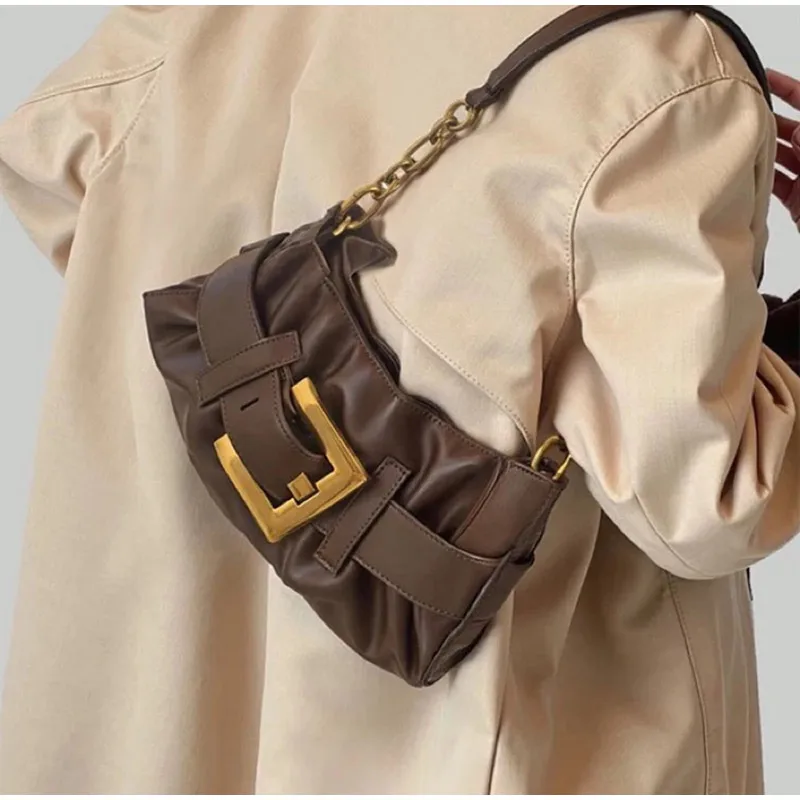 Nouveau sac fourre-tout plissé mode grande capacité épaule sous les bras sac marque Design tendance boucle de ceinture sac de moto sac pour femmes chaudes