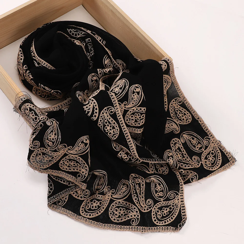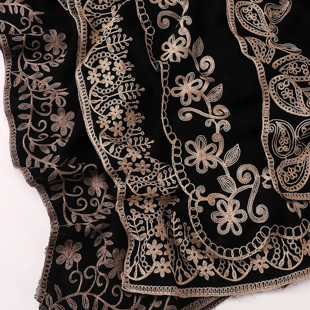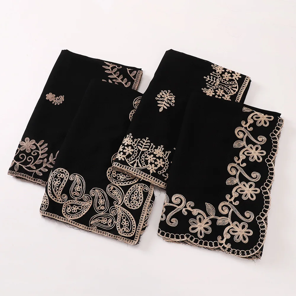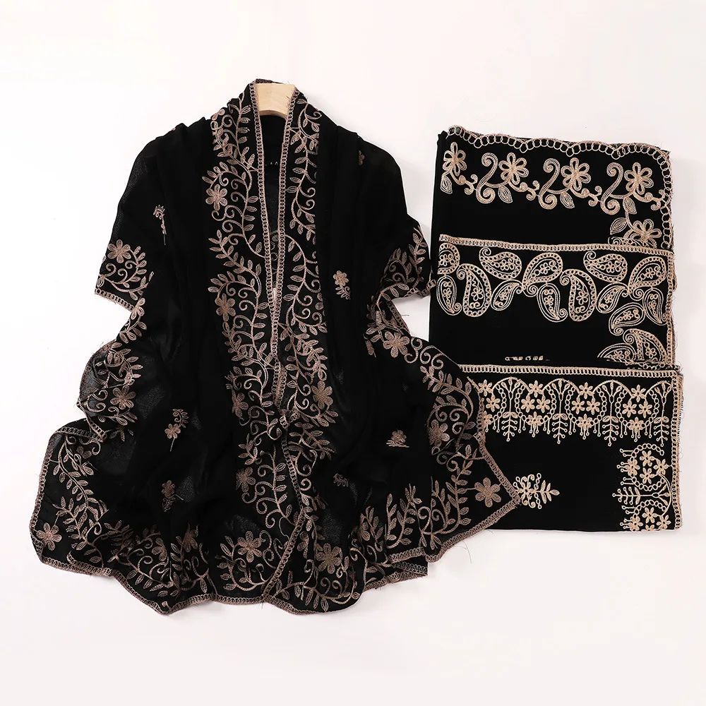 Nouveau Style ethnique musulman Hijabs pour femmes longue moyen-orient noir brodé couvre-chef dame Foulard Femme voile musulman Ramadan
