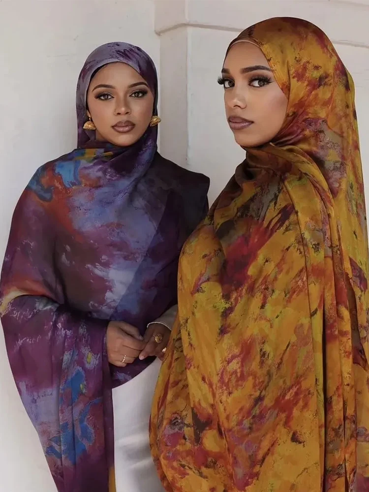 Nouveau Style malaisien plaine froissé Satin mousseline de soie Hijabs pour les femmes en Satin dubaï koweïtien ruban de Satin Ombre Vela aquarelle Hijab |