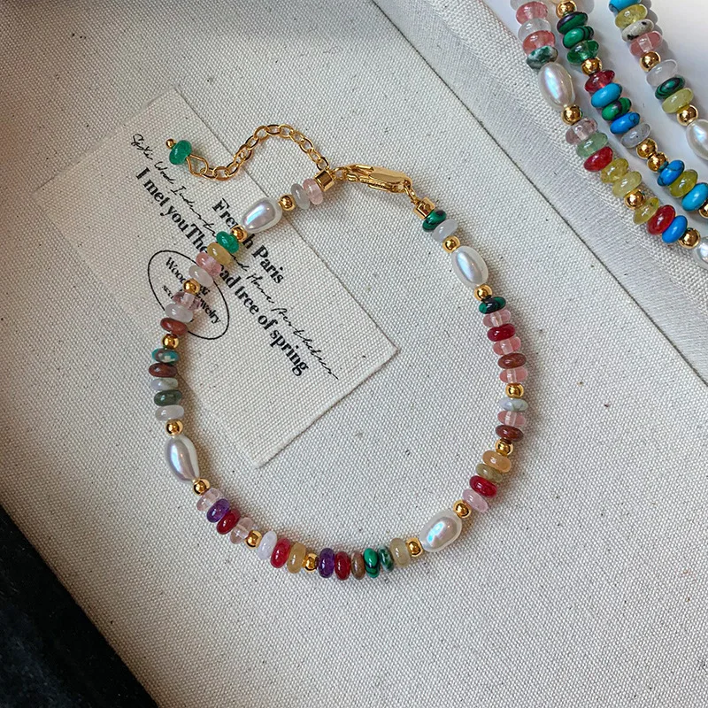 Nouveauté perles colorées à la mode pierre perle d’eau douce naturelle 14K or rempli femme ensemble de bijoux pour collier Bracelet cadeaux