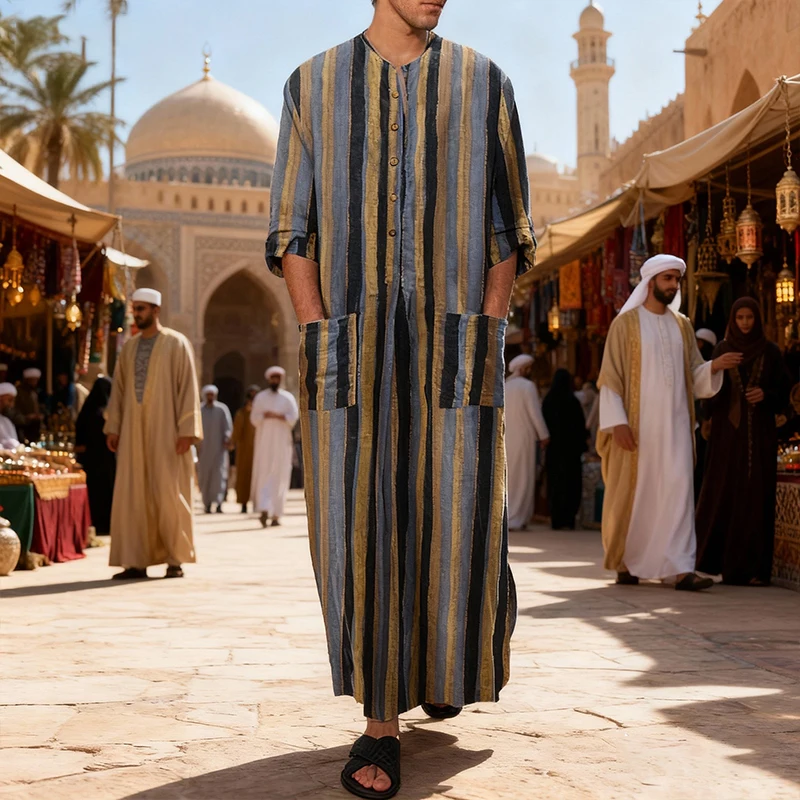 Type: New Men Islam Qamis Muslim Striped Robes